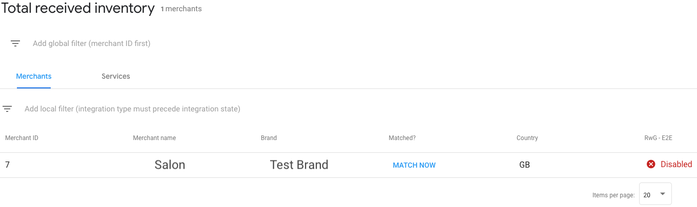 - Service details view - edit under “Merchant matched”