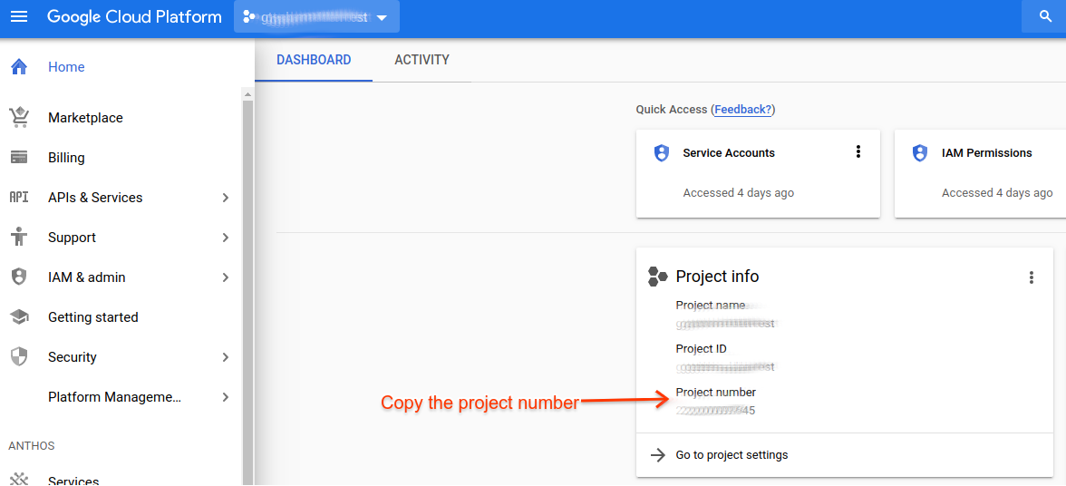 - Please note down the cloud project number as you will require it in