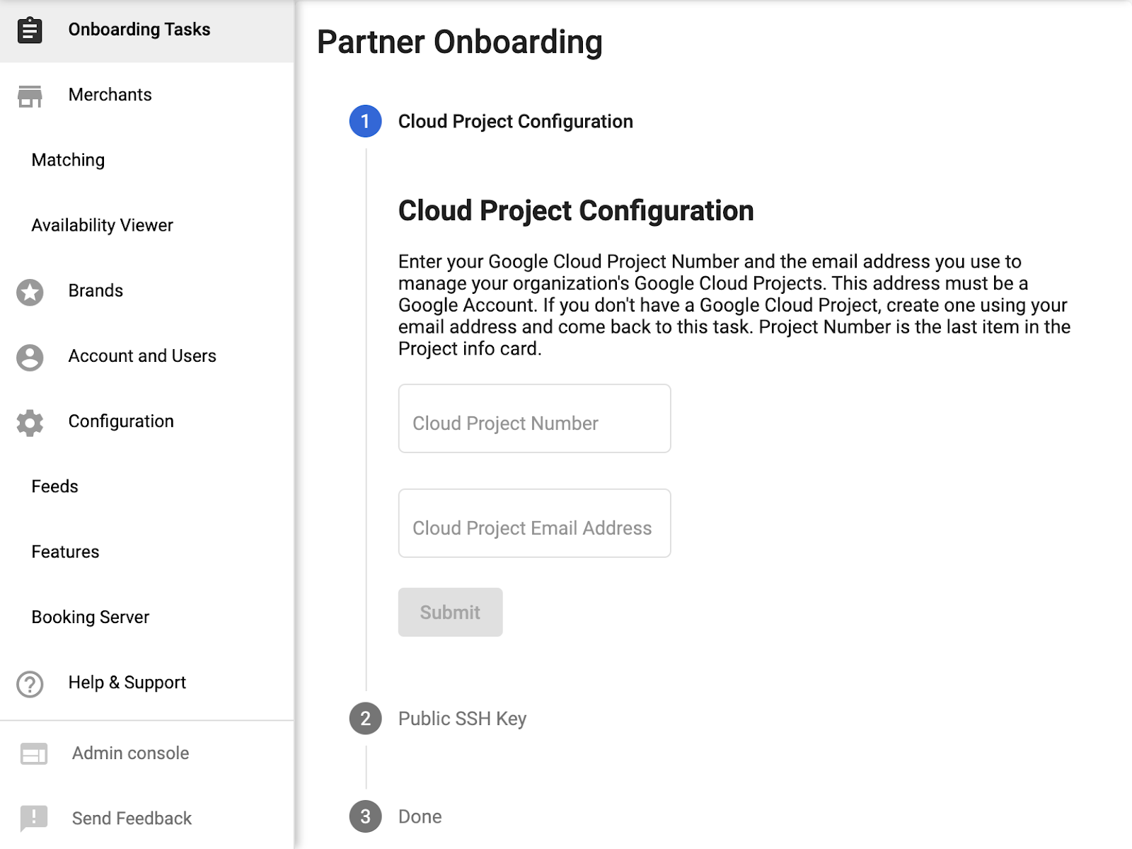 submitting the cloud project number and the cloud project email address