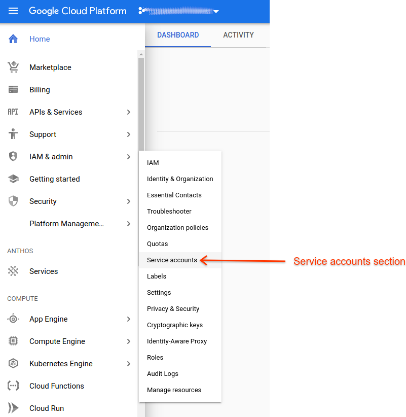 IAM & admin > Service accounts.