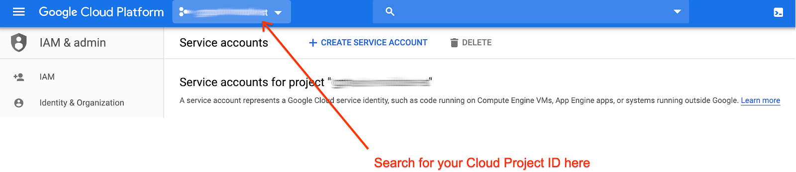 - Search for your existing or newly created cloud project id.