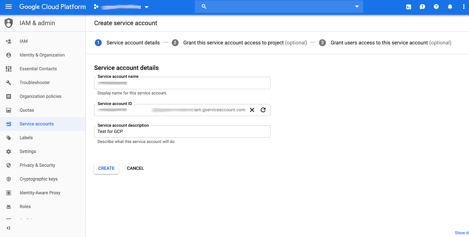 - Fill out the service account details.