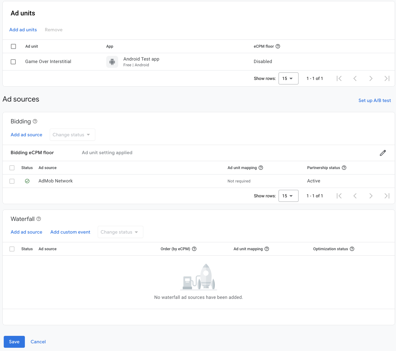Under the Waterfall card in the Ad Sources section, select Add Ad Source.
