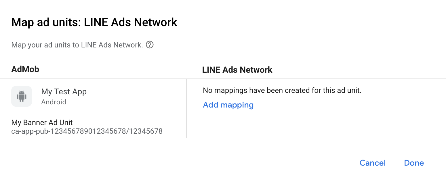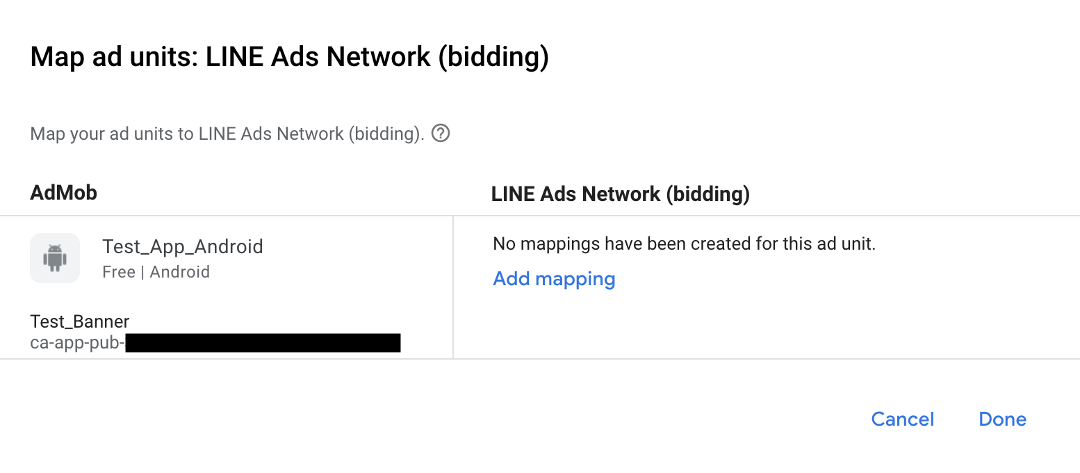 If you already have a mapping for LINE Ads Network, you can select it. Otherwise, click Add mapping.