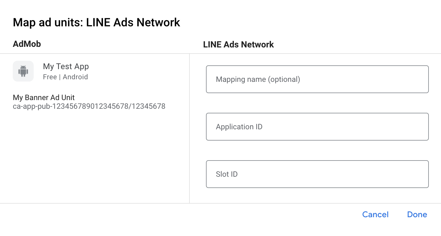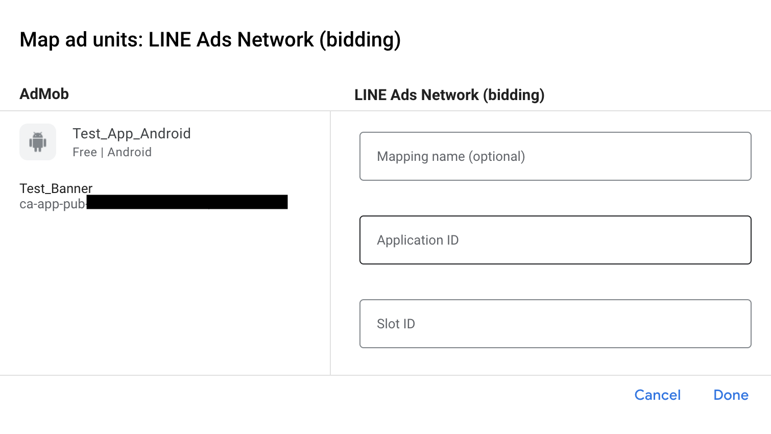 | 102 | com.google.ads.mediation.line | Missing or invalid Slot ID. |