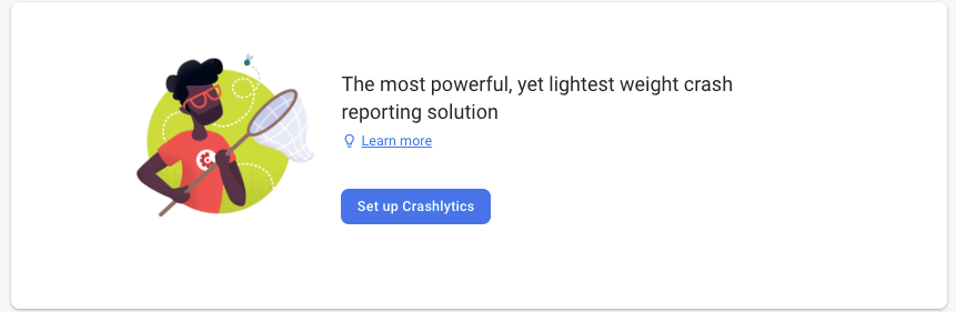 In the Crashlytics page of the Firebase console, click Set up Crashlytics.