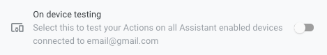 This setting allows you to enable or disable testing on a physical device. In order to test on a device, you need to be logged into the same account you used to create the Actions on Google project.