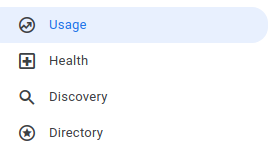 The Analytics section shows health and usage information for your Action. The left menu for Analytics has the following sub-sections: