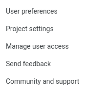 - More options: Additional options for user and project settings, accessed by clicking the more more_vert icon.