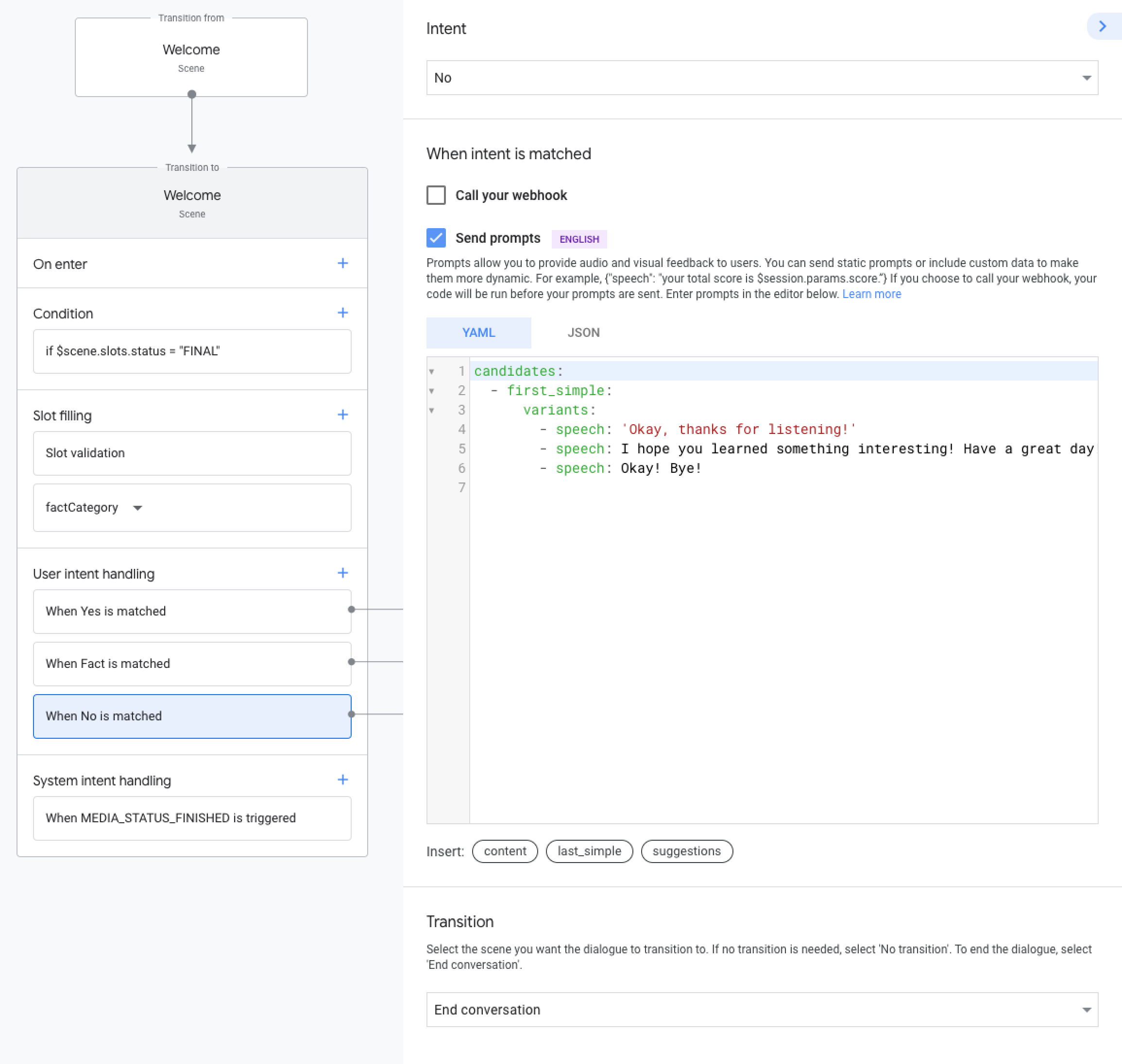- Interactive canvas: Options for using Interactive Canvas in your project.