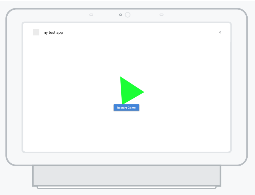In the simulator, enter "Talk to Interactive canvas sample" to start the Action. You should see a spinning triangle powered by the web app deployed at