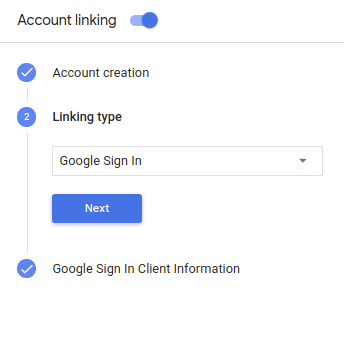 You must configure your project in the Actions Console and enable Google Sign-In for account linking.