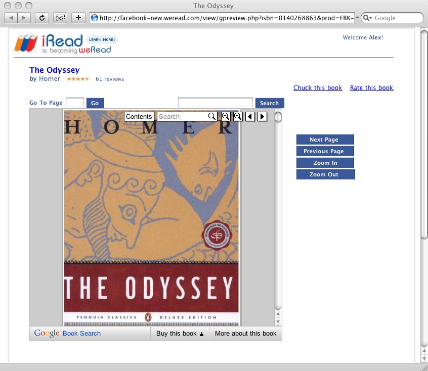 Using the Book Search Embedded Viewer and Data APIs, weRead was able to enhance their application with search across and preview functionality. This is available to weRead users not only on weRead.com, but through its apps for social networks including Facebook.