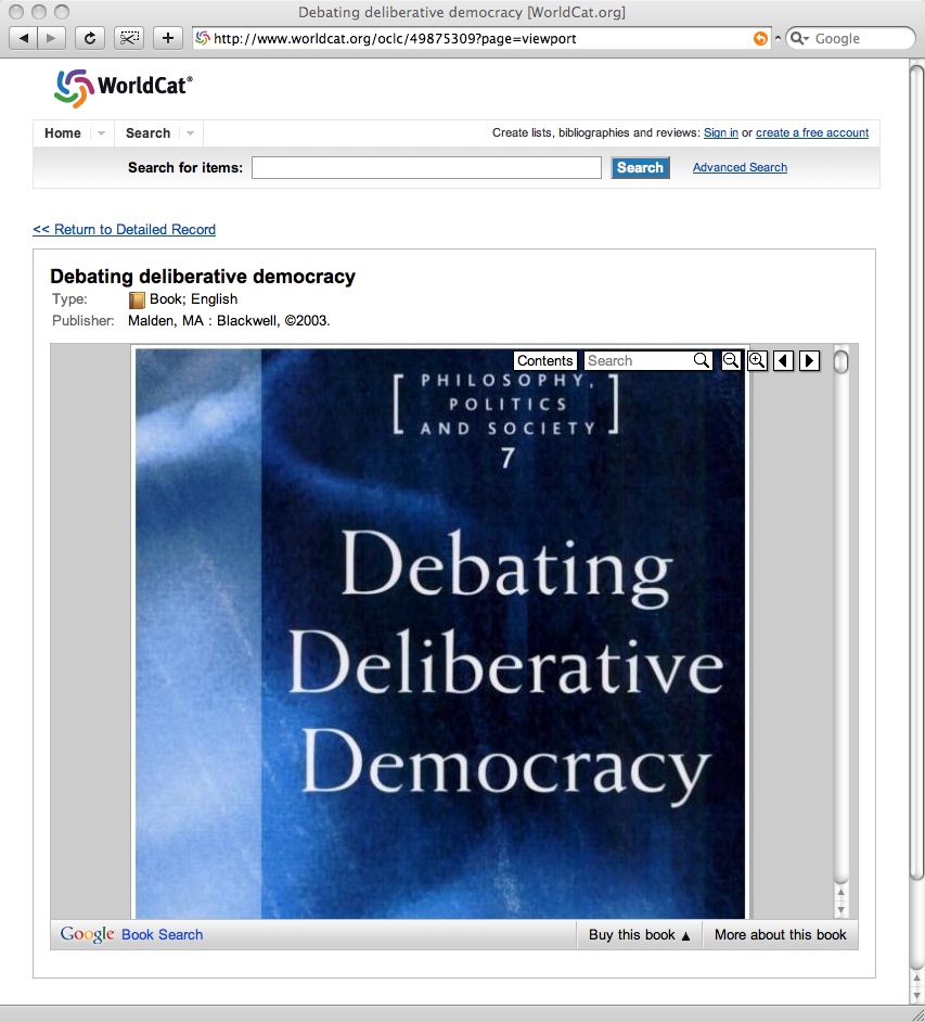 This Google Book Search APIs will also enrich the experience of visitors to WorldCat.org because information seekers can now view full digitized text within WorldCat.org. The more information they are able to find within WorldCat.org the greater their likelihood of connecting to libraries. Now WorldCat.org will be seen as the provider of more evaluative content, which will bring users who start their search on the web back to libraries.
