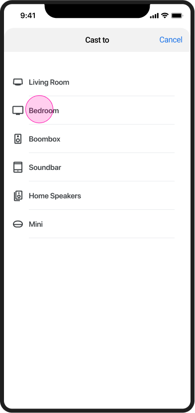 Both sender and receiver devices must be on the same Wi-Fi network to start a Cast session.