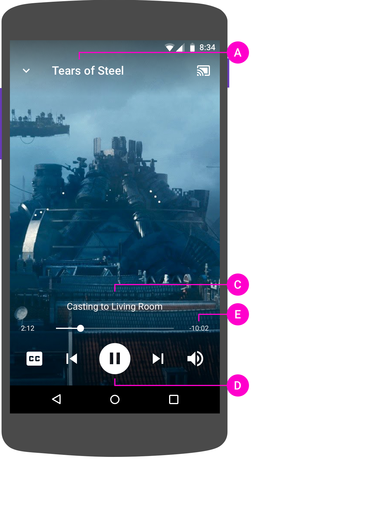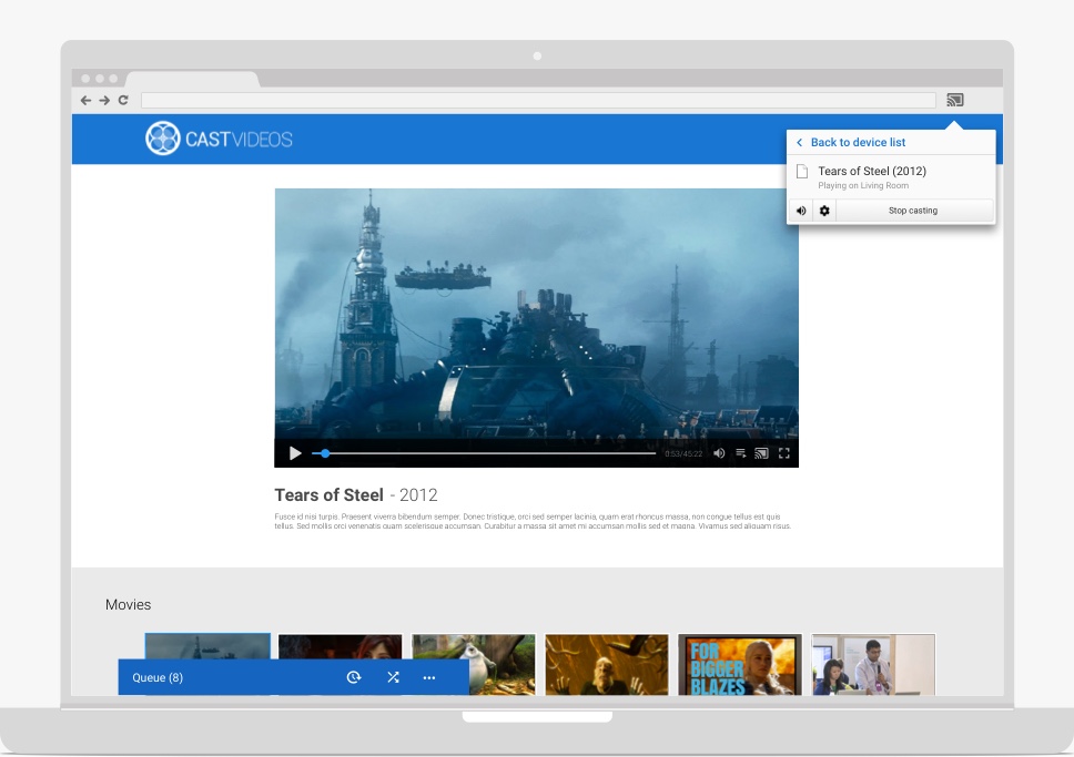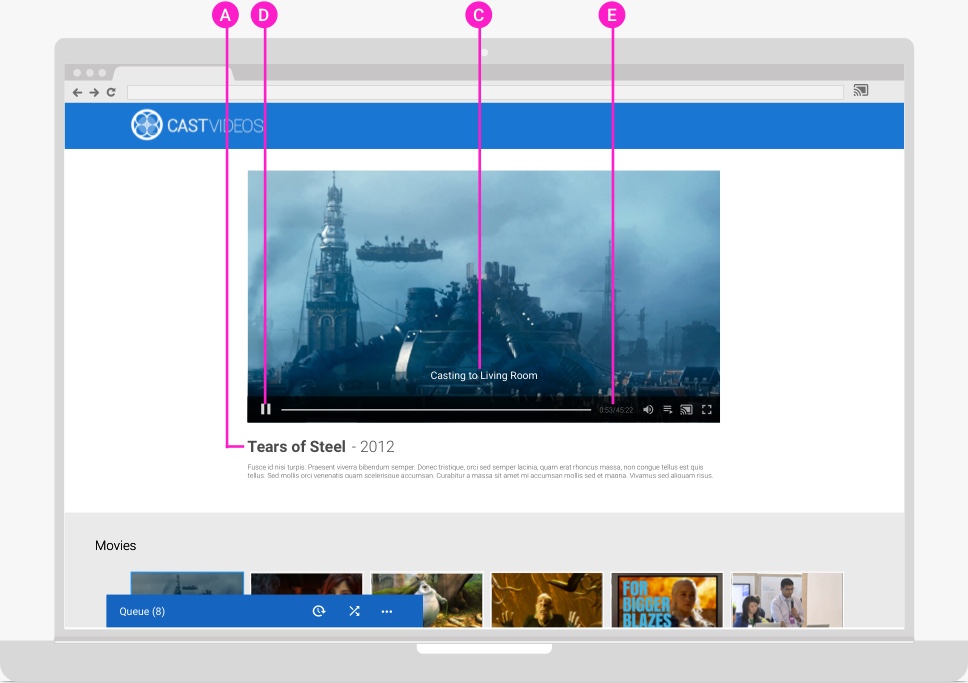 Note: In accordance with the Google Cast SDK Additional Developer Terms of Service, a Cast media application must use the Play control APIs (Media Playback Messages) defined for the SDK to control media playback on the Web Receiver.