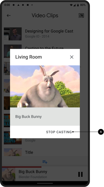 Cast dialog, disconnect button