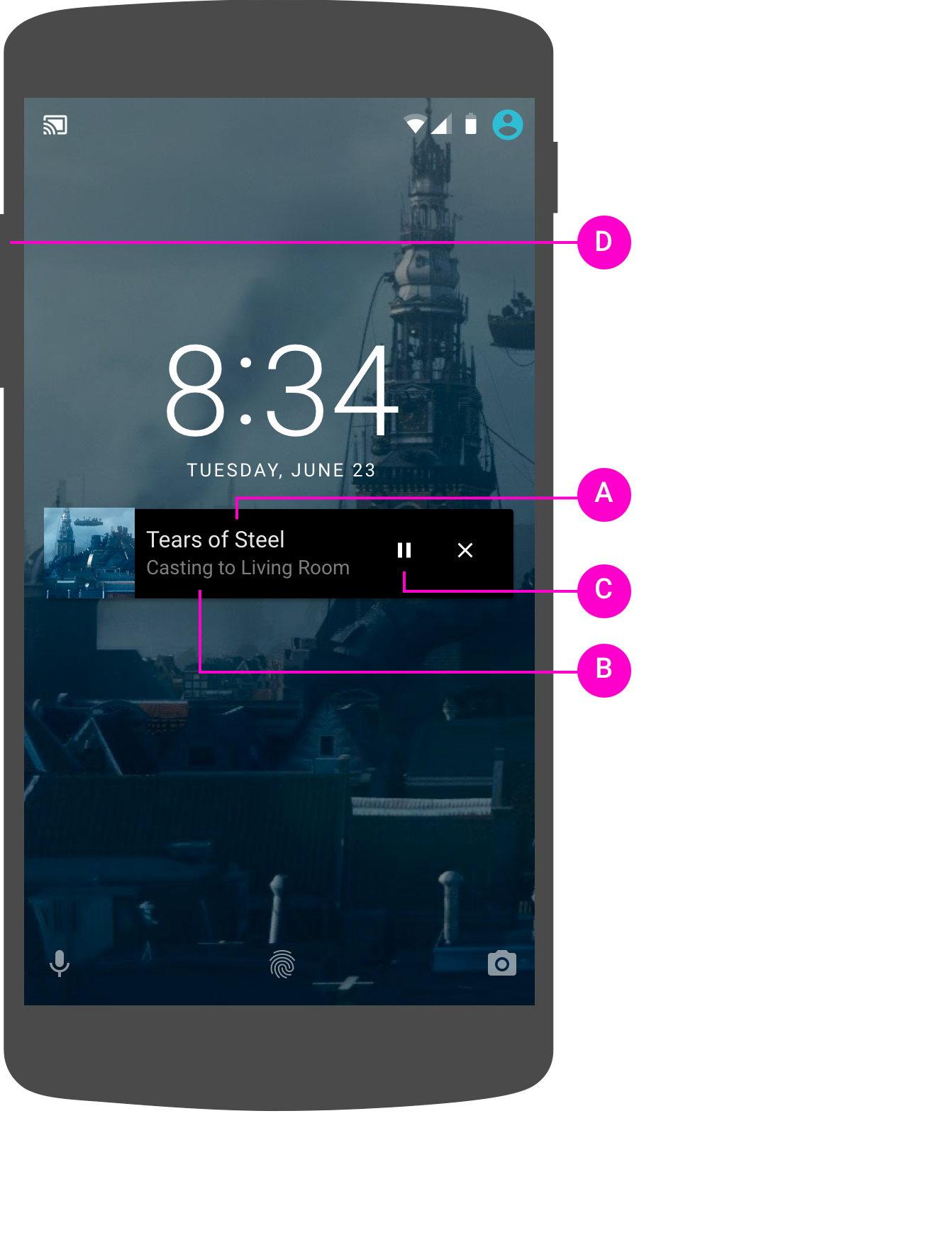 MediaSessionorMediaSessionCompat(for versions 4.4 and 4.3) orNotification(for 5.0 and later).