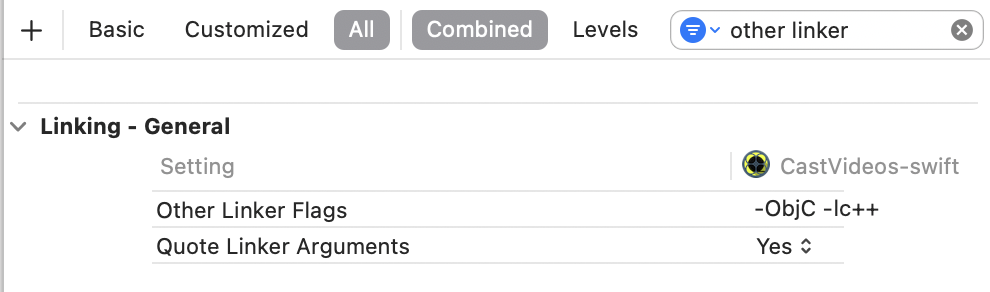 -Ofastfor the Optimization Level flag in Xcode will cause the Cast iOS SDK to crash; the SDK supports the default value-Os. -