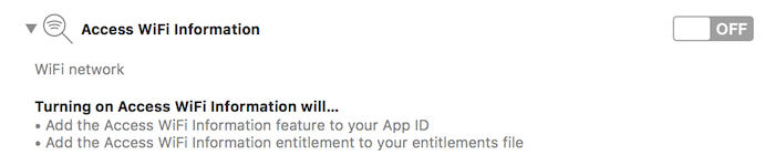 Ensure that the Access WiFi Information switch in the Capabilities section of the target is set to "On".