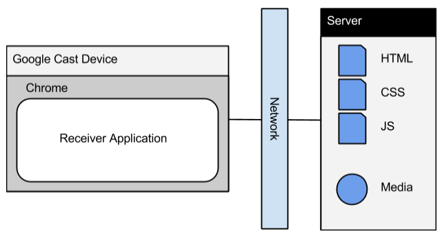 A Web Receiver application is an HTML5/JavaScript application that runs on the Web Receiver device, such as a Chromecast. The Web Receiver application performs the following functions: