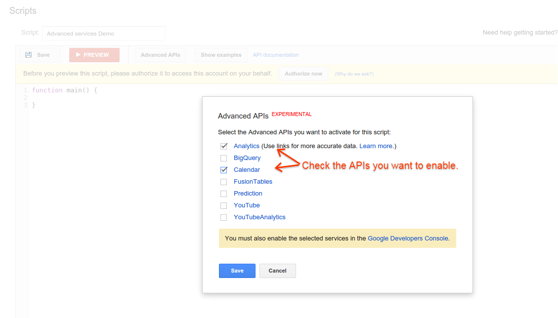 Enable Advanced APIs