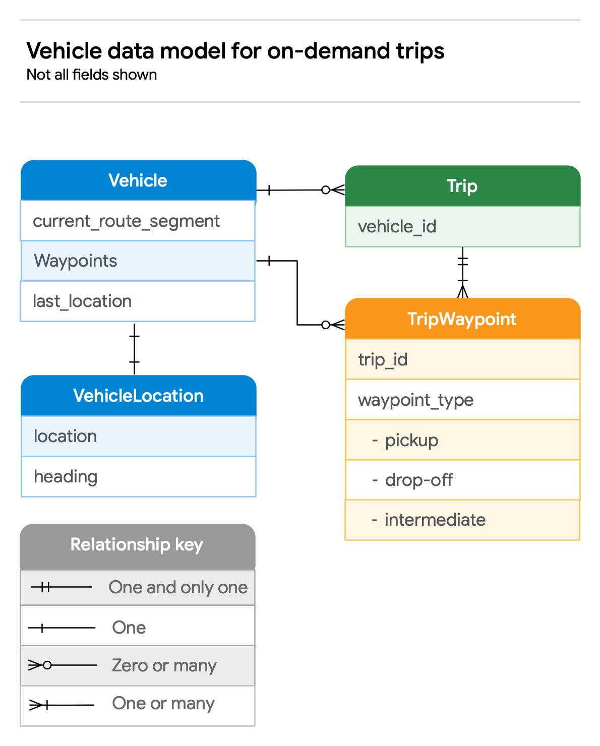 - For on-demand trips, pickup or dropoff activities occur at given stop locations, which are known as trip waypoints in the on-demand data model.