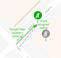 The Navigation SDK chooses the road segment closest to the waypoint—that has a lane direction that aligns (within +/- 55 degrees) with the side of the road that the waypoint is on.