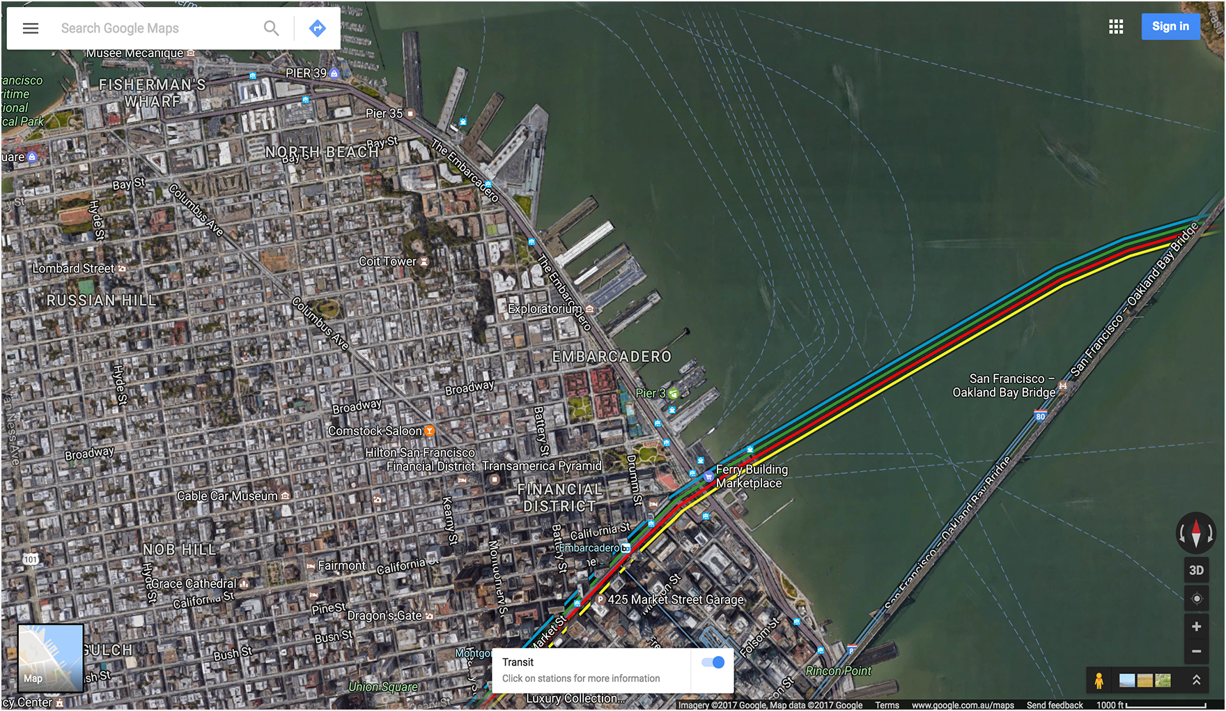 The following example launches a map with two-wheeler directions from Google Mumbai to the Mumbai International Airport.