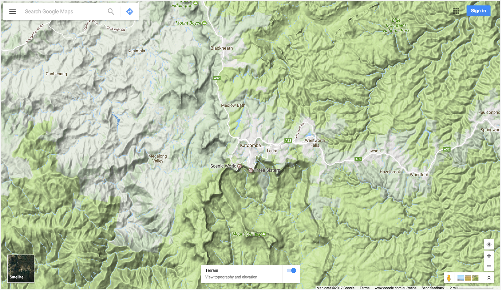 The following example displays a map centered on Katoomba, NSW,