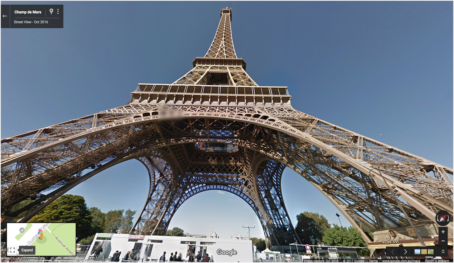 The first two examples display a panorama of the Eiffel Tower. Example one