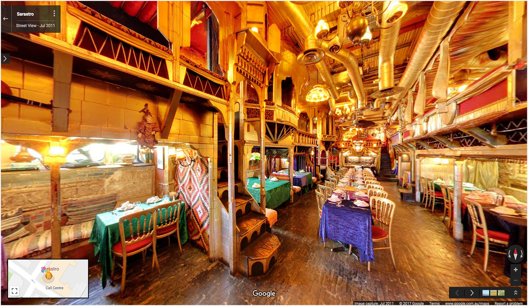 Example 3: Displays a panorama of the interior of the Sarastro restaurant in London, UK, specified with a panorama ID.