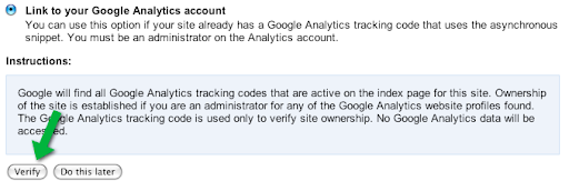 to add a JavaScript tracking code to your pages. When you're ready to verify ownership of your