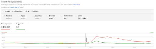 The new Search Analytics report enables you to break down your site's search data and filter it in many different ways in order to analyze it more precisely. For instance, you can now compare your mobile traffic before and after the April 21st Mobile update, to see how it affected your traffic.