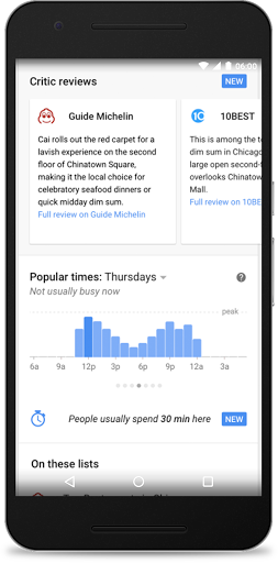 Today, we're introducing Reviews from the web to local Knowledge Panels, to accompany our recently launched best-of lists and critic reviews features. Whether your site publishes editorial critic reviews, best-of places lists, or aggregates user ratings, this content can be featured in local Knowledge Panels when users are looking for places to go.