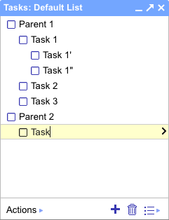 parentparameter - Specifies the ID of the parent task under which the new task should be inserted; omitting this parameter places the task in the top level of the list.